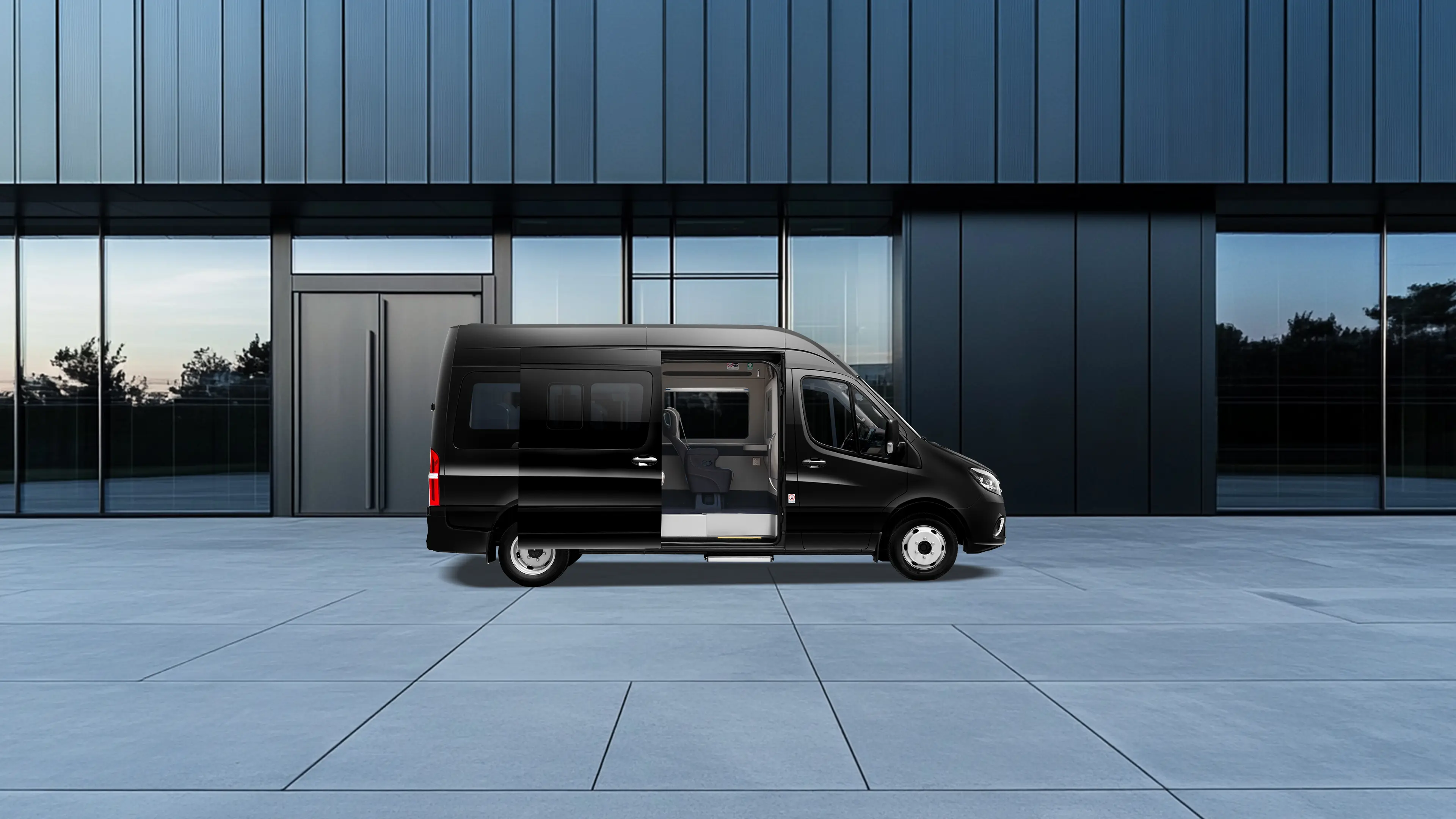 • Rear barn doors + Sliding passenger door