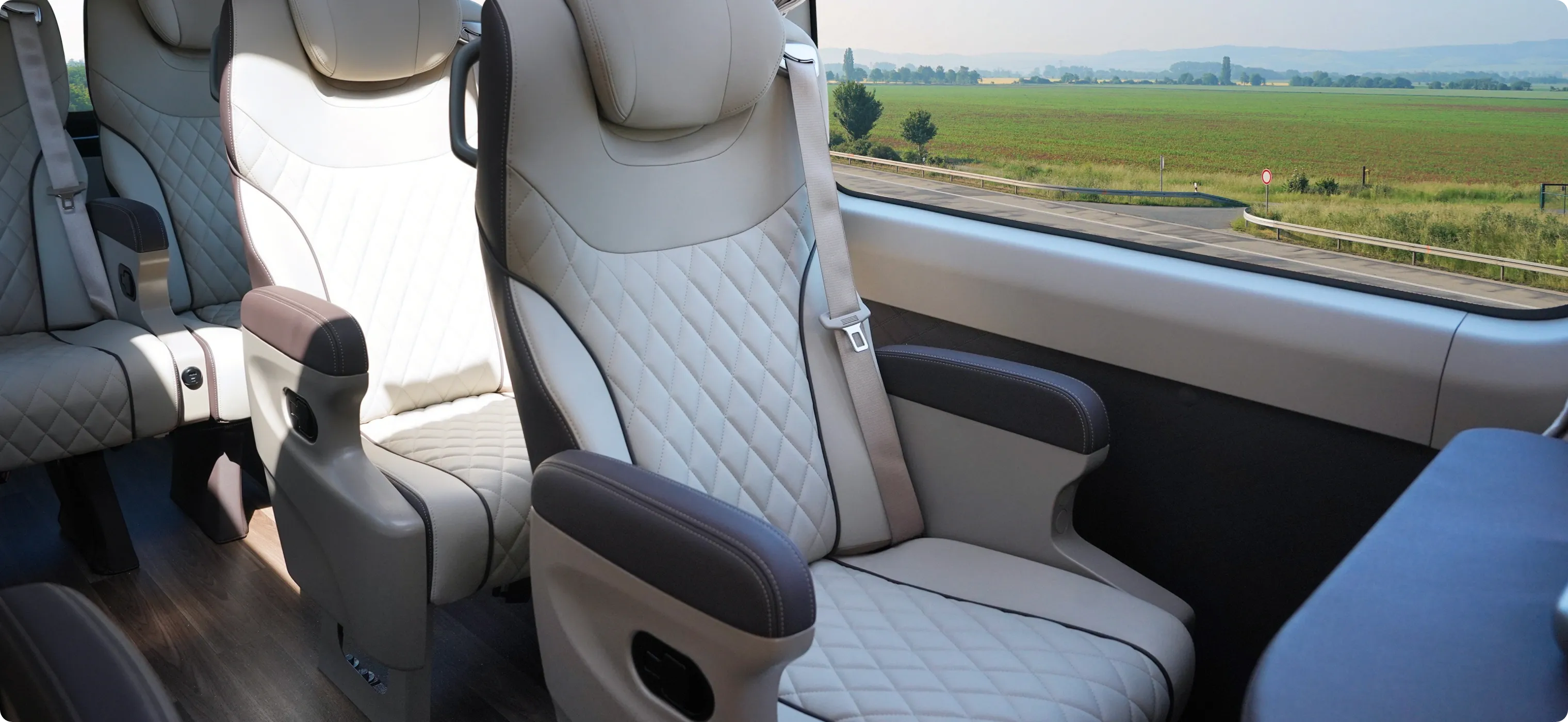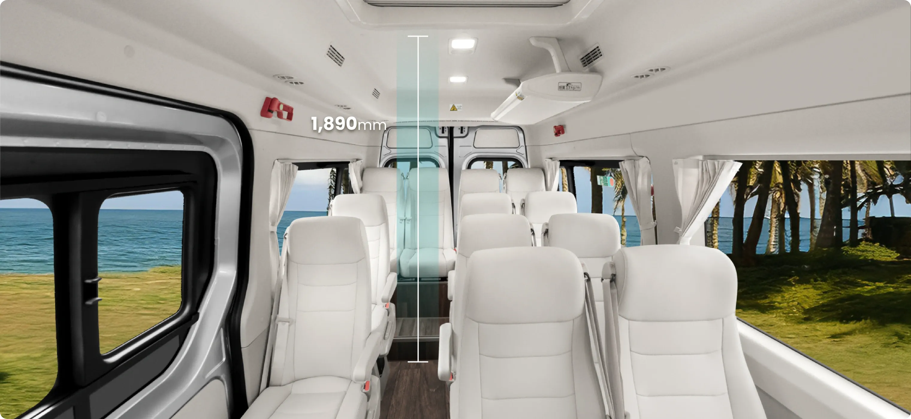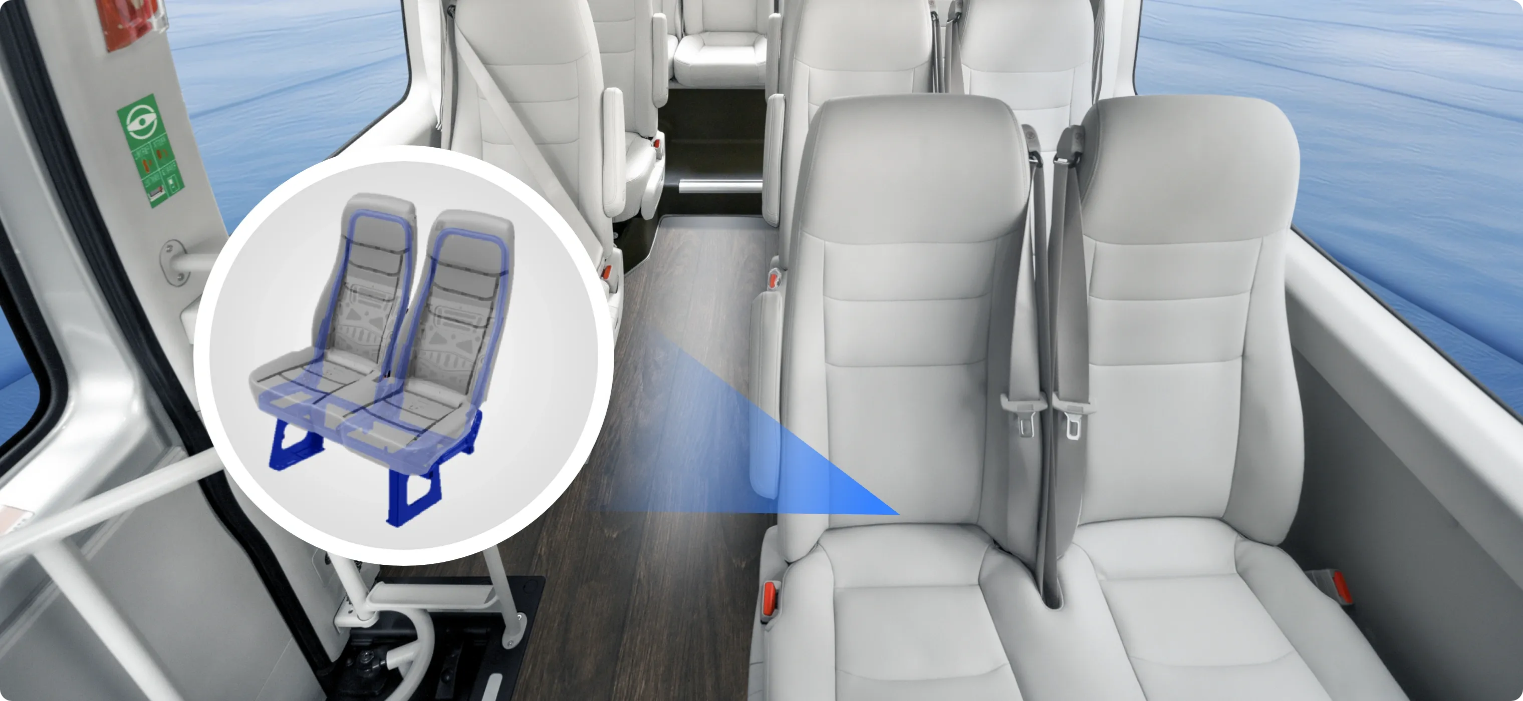 Vans are defined and developed according to the safety standards for large and medium-sized buses. The safety seat brackets, designed to meet the 50 km/h collision standard, are directly mounted to the frame beams to prevent seat detachment, overturning, or sliding in a collision, effectively ensuring driver and passenger safety.