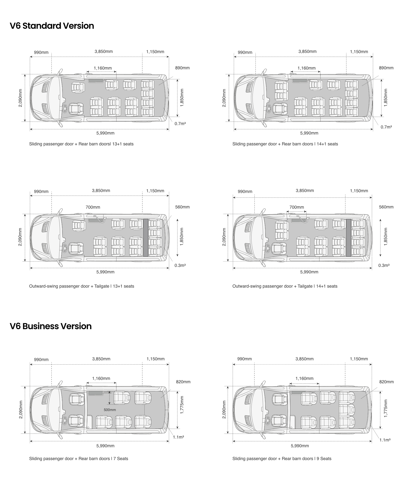 • Tailgate + Outward-swing passenger door